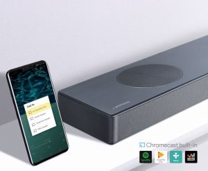 Επιπλέον, οι χρήστες μπορούν να παίξουν την αγαπημένη τους μουσική μέσω του ενσωματωμένου Chromecast εύκολα και απλά. Ανοίγοντας μια εφαρμογή που υποστηρίζει λειτουργία μετάδοσης, όπως το Spotify και πατώντας το κουμπί μετάδοσης, τα LG Sound Bars θα ανταποκριθούν αμέσως.