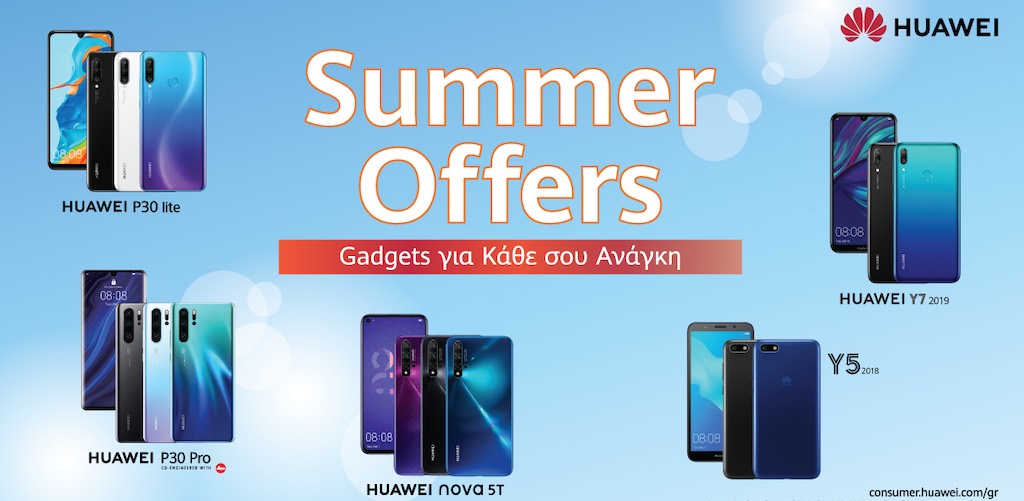 Καλοκαιρινές προσφορές σε τελευταίας τεχνολογίας smartphones, λάπτοπ, τάμπλετ και gadgets αλλά και Δώρο ο ΦΠΑ στα HUAWEI AppGallery Smartphones με προνομιακή χρήση εφαρμογών, εκπτωτικές υπηρεσίες service και δώρα-έκπληξη από τα Apps!