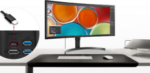 Ακόμη, μέσω της υποστήριξης USB Type–C, παρέχει ευκολότερο έλεγχο και συνδεσιμότητα αφού παρέχονται δυνατότητες φόρτισης των πιο σύγχρονων φορητών υπολογιστών με ισχύ έως και 94W, γρήγορης μεταφοράς δεδομένων και σύνδεσης οθόνης ενώ είναι συμβατό και με συσκευές Mac1. Έτσι, με ένα μόνο καλώδιο το νέο UltraWide QHD μπορεί να αποτελέσει τον απόλυτο σταθμό εργασίας.