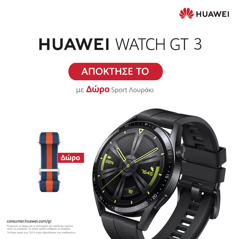 Τα νεά HUAWEI Watch GT 3 Series διατίθενται από τη Δευτέρα 6 Δεκεμβρίου 2021 σε όλο το επίσημο δίκτυο καταστημάτων της εταιρείας με δώρο ένα επιπλέον λουράκι και μπορεί να αποτελέσει το καλύτερο δώρο των φετινών εορτών.
