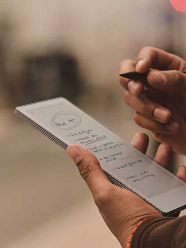 Προσομοιάζοντας με αριστουργηματικό τρόπο στην αίσθηση της γραφής σε χαρτί, η πιο φορητή και εξελιγμένη ψηφιακή… ατζέντα της reMarkable υπόσχεται να αντικαταστήσει τα παραδοσιακά σημειωματάρια με μια έγχρωμη, ξεκούραστη και απόλυτα εστιασμένη εμπειρία, έτοιμη να σας ακολουθήσει από τις αίθουσες διασκέψεων και τα αμφιθέατρα μέχρι τις στάσεις του Μετρό!