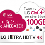 Η LG Electronics ανταμείβει τους καταναλωτές που έχουν επιλέξει LG προϊόντα οικιακής ψυχαγωγίας προσφέροντάς τους αυτόματα με την πρόσβασή τους στο LG Cloud 100GB και 50GB Premium Cloud Storage αντίστοιχα. Συγκεκριμένα, από τον Οκτώβριο μέχρι και τον Δεκέμβριο, οι κάτοχοι των τηλεοράσεων τεχνολογίας Ultra HD και OLED, λαμβάνουν δωρεάν 100GB Premium Cloud Storage, ενώ οι χρήστες της πλατφόρμας webOS 50GB Premium Cloud Storage.