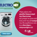 Η Electronet, σας προσφέρει τη δυνατότητα να πάρετε μέρος στον μεγάλο διαγωνισμό και να διεκδικήσετε ένα από τα 3 στεγνωτήρια-πλυντήρια της LG!