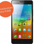 Αποκλειστικά στα Public θα συναντήσετε το επώνυμο smartphone Α6000 της Lenovo μόνο 149€! Εξοπλισμένο με τεχνολογία 4G και τετραπύρηνο επεξεργαστή για να σερφάρετε με αξεπέραστες ταχύτητες, το smartphone Lenovo A6000 διαθέτει μεγάλη HD οθόνη 5’’ για να βλέπετε με άνεση βίντεο και φωτογραφίες.