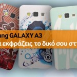 Αντίστοιχα, εκείνοι που αγόρασαν το Samsung Galaxy A3 μπορούν να αποκτήσουν μια μοναδική θήκη για το κινητό τους, που ταιριάζει στο δικό τους στυλ, επιλέγοντας ανάμεσα σε πέντε διαθέσιμα σχέδια. Η προσφορά ισχύει για αγορές που πραγματοποιήθηκαν είτε ηλεκτρονικά είτε σε κατάστημα μέσα από το επίσημο δίκτυο συνεργατών της Samsung Electronics Hellas.