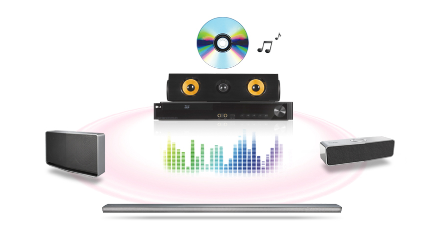 Χάρη στη λειτουργία LG–Multiroom Audio, υπάρχει η δυνατότητα απευθείας μετάδοσης της μουσικής από CD και USB, ενώ μια σειρά από θύρες συνδεσιμότητας διευρύνουν τις επιλογές, επιτρέποντας αναπαραγωγή περιεχομένου από πολλές διαφορετικές εξωτερικές πηγές.