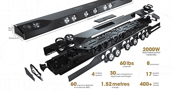 Το X-Fi Sonic Carrier φτάνει τα ασύλληπτα 1000W RMS <<κτηνώδους>> δύναμης. Το ασύρματο 600W RMS subwoofer έχει τέτοια ένταση που συγκλονίζει σε βάθος. Τροφοδοτούμενο από 8 επεξεργαστές, το Sonic Carrier δεν είναι μόνο ικανό να αναπαράγει ήχο υψηλής ανάλυσης, αλλά διαθέτει επίσης μια Ultra HD Video engine που υποστηρίζει την αναπαραγωγή εικόνας 4Κ 60fps σε τοπικό και online περιεχομένο.